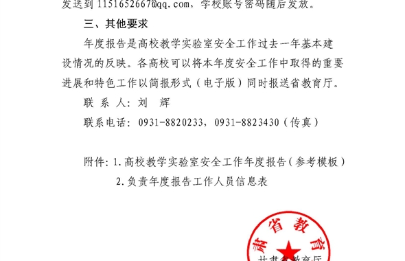 附件一:高校教學(xué)實驗室安全工作年度報告附件二:負責(zé)年度報告工作人員信息表