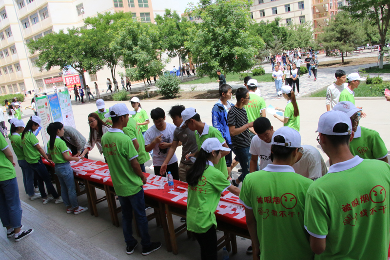 下午,100多名志愿者在學(xué)院一號(hào)、二號(hào)餐廳門口舉辦了 “世界無煙日”主題宣傳活動(dòng)。活動(dòng)現(xiàn)場(chǎng),通過展板宣傳、資料發(fā)放、橫幅簽名、控?zé)焺窠獾刃问?,宣傳了吸煙的危害,推廣普及健康知識(shí),倡導(dǎo)無煙健康生活方式,呼吁全院師生拒絕煙草、控?zé)熉募s,為建設(shè)一個(gè)清新無煙的環(huán)境努力奮斗!志愿者們還開展了撿拾煙頭活動(dòng),并在廁所、樓道等公共場(chǎng)所張貼禁煙、節(jié)水、光盤行動(dòng)等內(nèi)容的宣傳貼,以實(shí)際行動(dòng)助力文明校園創(chuàng)建、文明城市創(chuàng)建。