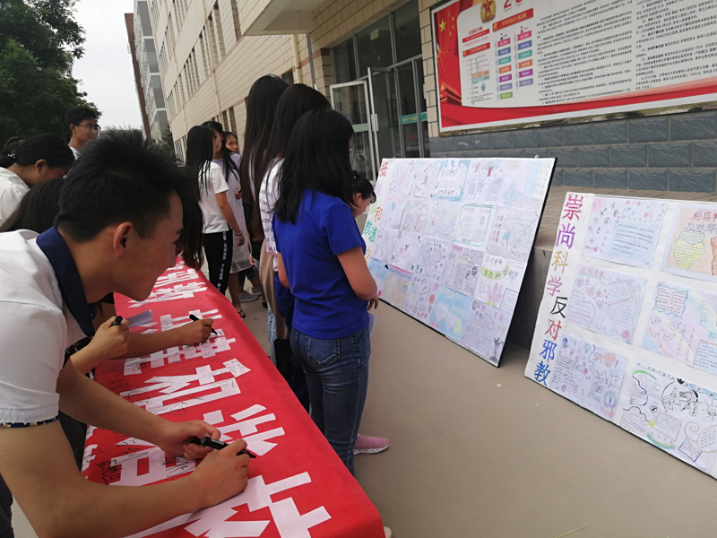 先后舉行“崇尚科學(xué),反對邪教,共建和諧校園”簽名活動、開展“崇尚科學(xué),反對邪教”主題班會。班會課上,老師為學(xué)生講解什么是邪教組織以及邪教的危害,培養(yǎng)學(xué)生的理性思維,樹立正確的世界觀、人生觀、價值觀,用科學(xué)的精神自覺抵制邪教。并通過黑板報,張貼反邪教手抄報等多種活動形式,讓師生對邪教危害性有進一步地了解,提高全社會反邪教、樹正氣的意識。以自己的實際行動,積極倡導(dǎo)、傳播科學(xué)思想,普及科學(xué)知識,弘揚科學(xué)精神,用科學(xué)的方法辦事,以科學(xué)的態(tài)度對待事物,共同促進校園和諧發(fā)展,提高了師生認識和抵制邪教的意識與能力。