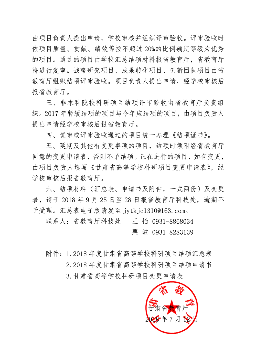 甘肅省教育廳關(guān)于對2018年度甘肅省高等學(xué)??蒲许?xiàng)目進(jìn)行結(jié)項(xiàng)的通知(附件).doc