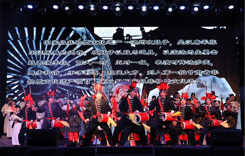 近年來,學(xué)院師生創(chuàng)作、改編了許多反映地方特色和校園生活主題的節(jié)目。其中晚會(huì)上由我院教師自編原創(chuàng)的大型吟誦舞臺(tái)劇《金戈鐵馬入夢(mèng)涼州》邀請(qǐng)了國家級(jí)非物質(zhì)文化遺產(chǎn)涼州攻鼓子助力表演,結(jié)合戲曲、舞蹈、器樂等形式,全方位展示了涼州文化深厚的底蘊(yùn)和鮮明的地域特色,涼州攻鼓子表演更是蕩氣回腸,讓現(xiàn)場(chǎng)師生充分領(lǐng)略了傳統(tǒng)文化的博大精深和獨(dú)特魅力。大學(xué)生藝術(shù)團(tuán)主持隊(duì)自編自演的詩歌朗誦《青春報(bào)告》,結(jié)合當(dāng)代大學(xué)生青春夢(mèng)想、歷史使命的創(chuàng)作和聲情并茂的演繹,體現(xiàn)了新青年對(duì)于理想與擔(dān)當(dāng)?shù)娜陆庾x。大學(xué)生藝術(shù)團(tuán)曲藝隊(duì)自導(dǎo)改編的相聲《新生入學(xué)指南》,以詼諧幽默的形式講解了大一新生入學(xué)后的趣味生活,贏得了新同學(xué)們的共鳴和陣陣掌聲。