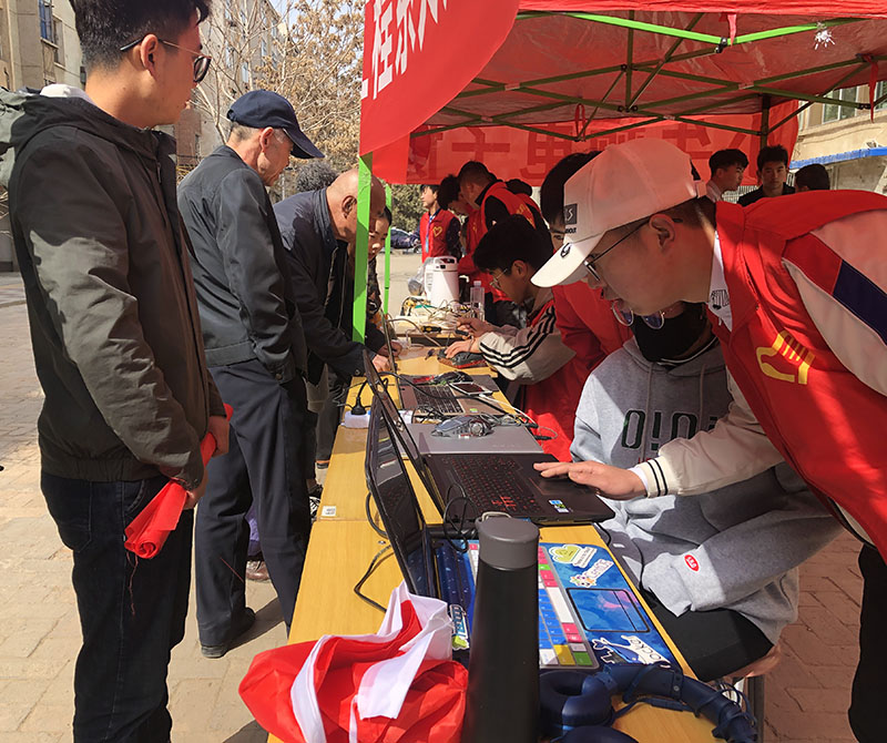 3月23日上午,我系小牛頓電子協(xié)會和計算機協(xié)會的志愿者們,來到泰安小區(qū)開展了以“發(fā)揚雷鋒精神,科技服務進社區(qū)”為主題的家電、電腦義務維修活動。志愿者們對小區(qū)居民送來的電水壺、電飯煲、微波爐、影碟機等家電進行了維修,受到了小區(qū)居民的歡迎。志愿者們還不辭辛苦,上門對有故障的電腦進行重裝系統(tǒng)、更新驅(qū)動等服務,師生們認真負責、一絲不茍的精神得到了居民們的贊許。