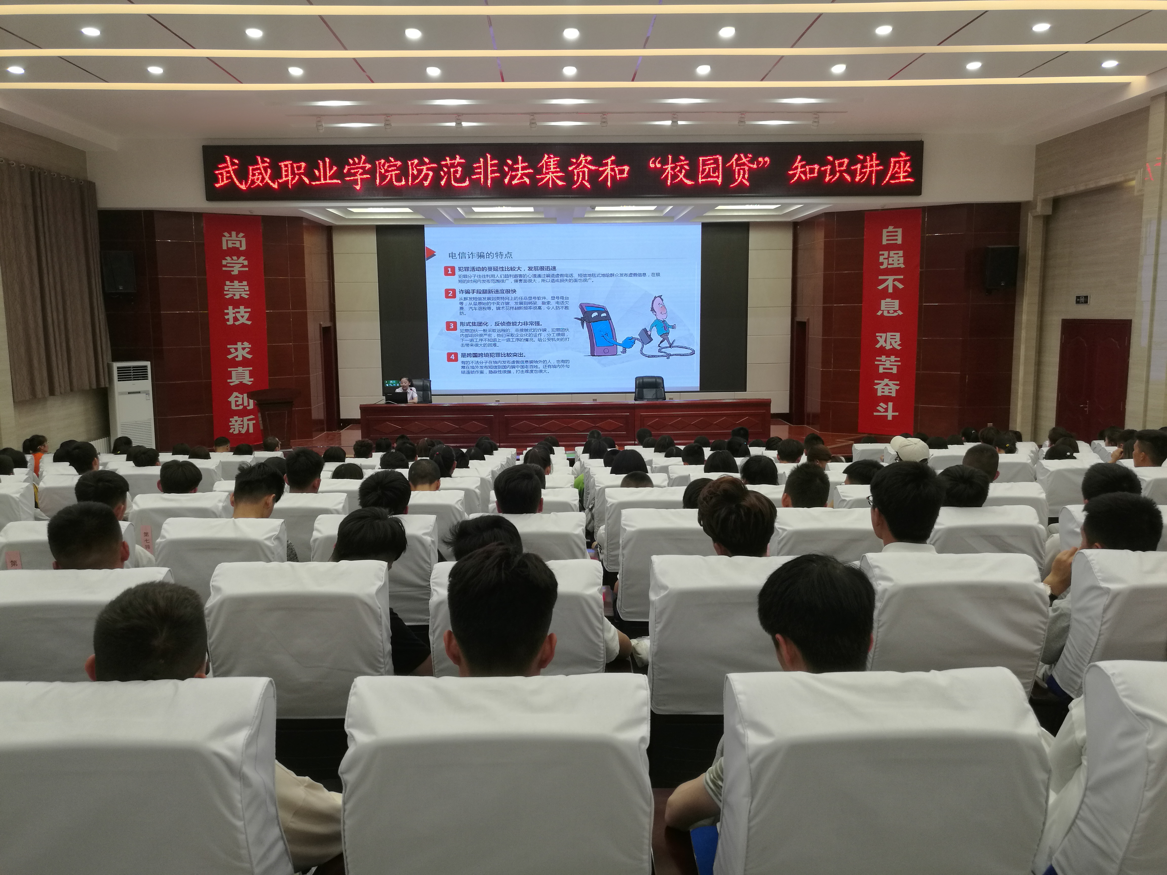 為深入貫徹落實甘肅省2019年防范非法集資和金融領(lǐng)域掃黑除惡宣傳月活動的有關(guān)精神,保護廣大師生的合法權(quán)益。6月9日晚,學(xué)院邀請中國農(nóng)業(yè)銀行武威支行風(fēng)險管理部工作人員朱琳在學(xué)院菁英廳作了關(guān)于防范非法集資和校園貸知識講座,學(xué)院副院長王永緒出席活動,保衛(wèi)處、計劃財務(wù)處負責(zé)同志及各系師生代表200余人聆聽了講座。