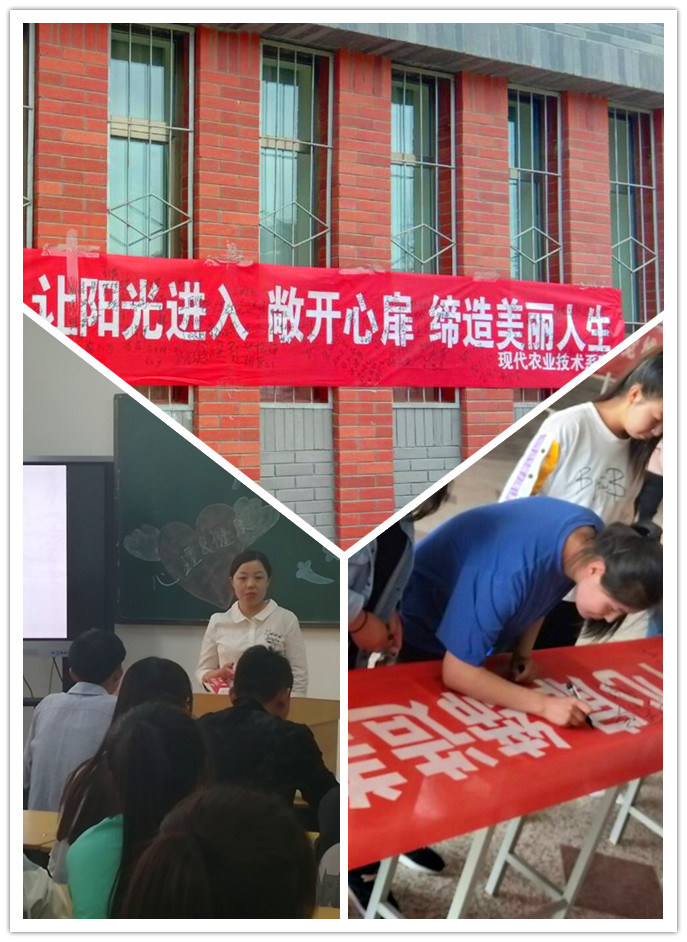 邀請現(xiàn)代農(nóng)業(yè)技術(shù)系張曉燕老師做了題為《預見未知的自己》的講座;系團學會組織學生參加“打開心靈的窗戶,讓陽光進入;敞開心扉,締造美麗人生?!敝黝}簽名活動。各班召開心理健康主題班會、開展心理游戲和手抄報活動。