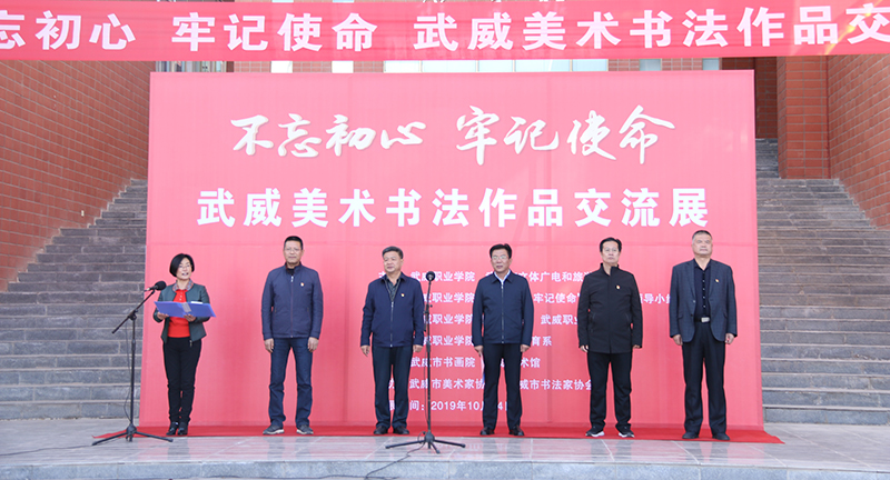 為深入開展“不忘初心牢記使命”主題教育,10月14日下午,武威職業(yè)學院、武威市文體廣電和旅游局舉辦的“不忘初心、牢記使命”武威美術書法作品交流展在學院大學生活動中心前廣場隆重開幕。