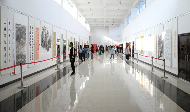 齊澤山在致辭中說,武威職業(yè)學院是國家骨干高等職業(yè)院校,專業(yè)門類齊全、師資力量雄厚、教學科研成果豐碩,近年來,學院培養(yǎng)了一大批技能過硬、素質(zhì)優(yōu)良的專業(yè)人才,為武威經(jīng)濟社會發(fā)展做出了卓越的貢獻,贏得了社會各界的廣泛好評。此次交流展是武威市書畫院、武威美術館首次與武威職業(yè)學院開展的一次院校間藝術交流活動,同時也是一次送書畫進高校活動,為院校雙方提供了一個互相交流、互相學習的機會和平臺,為高校營造了更加良好的人文藝術氛圍。提升了武威職業(yè)學院主題教育的質(zhì)量和效果,對提高師生的藝術修養(yǎng)、審美水平,強化高校文化育人和人文校園建設、傳承弘揚優(yōu)秀傳統(tǒng)文化起到積極的推動作用。