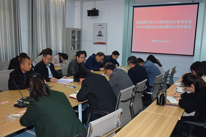 根據(jù)學(xué)院組織人事處《關(guān)于召開2018年度基層黨組織組織生活會(huì)和開展民主評(píng)議黨員的通知》要求,結(jié)合學(xué)院實(shí)際,新能源與動(dòng)力工程學(xué)院辦公室黨支部于3月14日下午在黨員活動(dòng)室召開組織生活會(huì)并開展民主評(píng)議黨員活動(dòng)。會(huì)議由黨支部書記任陶主持,學(xué)院黨委委員、副院長(zhǎng)翟存祥同志以普通黨員身份出席會(huì)議,并對(duì)會(huì)議點(diǎn)評(píng)指導(dǎo)。