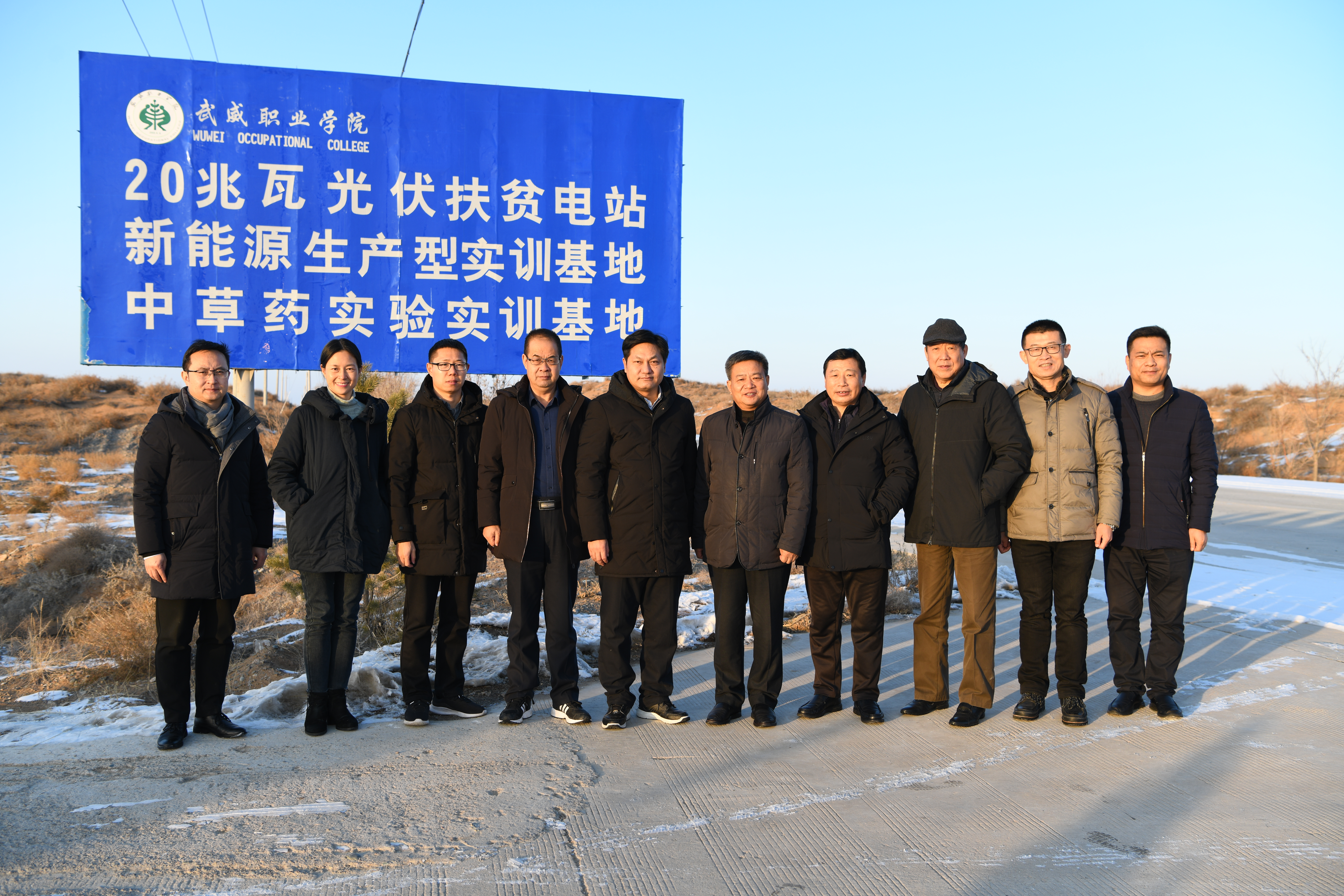 ? 考察中戴志敏一行還深入學(xué)院教育教學(xué)實踐基地八步沙林場、學(xué)院新能源生產(chǎn)性實訓(xùn)基地20兆瓦光伏電場進行了考察。