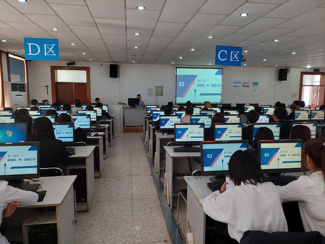 學院黨委委員、副院長張開禮,區(qū)委網(wǎng)信辦主任何秀梅、區(qū)委網(wǎng)信辦網(wǎng)信協(xié)調組組長李亮武,武威農產(chǎn)品電商供應鏈運營中心副總經(jīng)理邊亮、武威農產(chǎn)品電商供應鏈運營中心數(shù)據(jù)運營經(jīng)理楊大鵬出席了開班儀式,儀式由學院創(chuàng)新創(chuàng)業(yè)中心主任顏魯薪主持,來自全院11個教學院系的直播團隊、國際留學生及指導教師共118人參加了培訓。