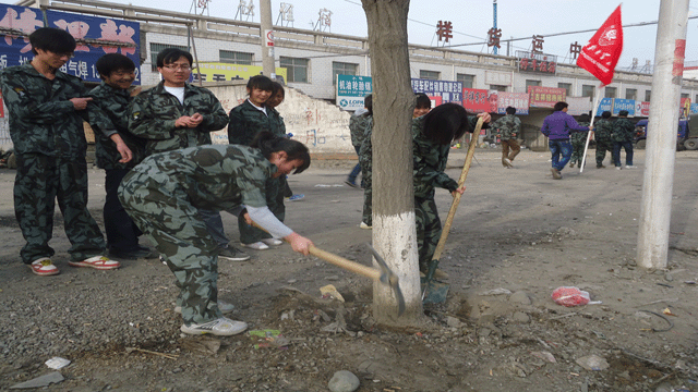年年植樹(shù),人人植樹(shù),公益植樹(shù),熱情的高漲,無(wú)疑是一種社會(huì)的進(jìn)步。在老師的帶領(lǐng)下,同學(xué)們進(jìn)行分組、領(lǐng)取勞動(dòng)工具。到植樹(shù)點(diǎn)后同學(xué)們兩兩組合,在馬路兩側(cè)一字排開(kāi),揮動(dòng)鐵鍬,松土挖坑,干得十分起勁,盡管道路上塵土飛揚(yáng),參加植樹(shù)活動(dòng)的老師同學(xué)卻揮汗實(shí)干,從學(xué)院西門(mén)口到皇臺(tái)酒廠一段的馬路兩側(cè)留下了同學(xué)們勞動(dòng)的身影和歡快的笑語(yǔ)。
