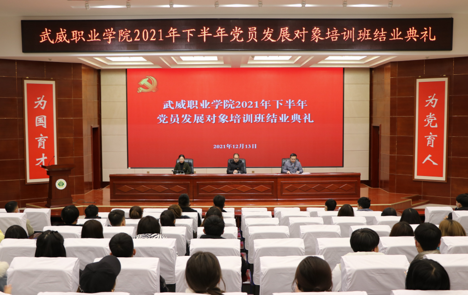 任陶宣讀了《中共武威職業(yè)學院委員會關于黨員發(fā)展對象培訓班結業(yè)情況的通報》,培訓班班主任、建筑工程系黨總支專職組織員呂雪玲宣讀了《2021年下半年黨員發(fā)展對象培訓班結業(yè)名單》。