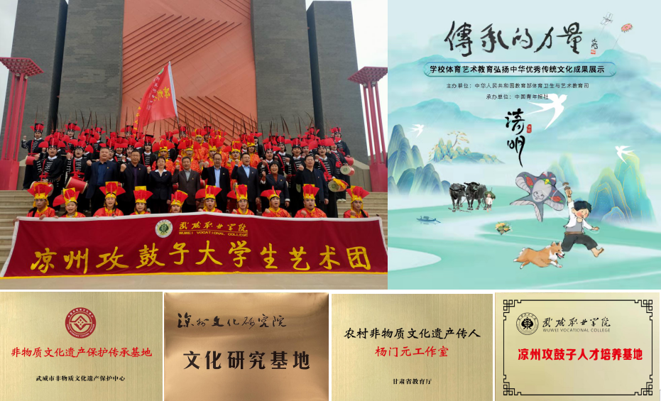 近年來,學校全力推進“雙高計劃”項目建設(shè),組織成立了武威職業(yè)學院涼州攻鼓子大學生藝術(shù)團,聘請國家級非遺代表性傳承人楊門元親傳技藝,并開展了系列展演活動,著力打造特色校園文化品牌,助推文化繁榮、社會文明的新武威和華夏文明傳承創(chuàng)新區(qū)建設(shè),服務(wù)鄉(xiāng)村振興戰(zhàn)略。