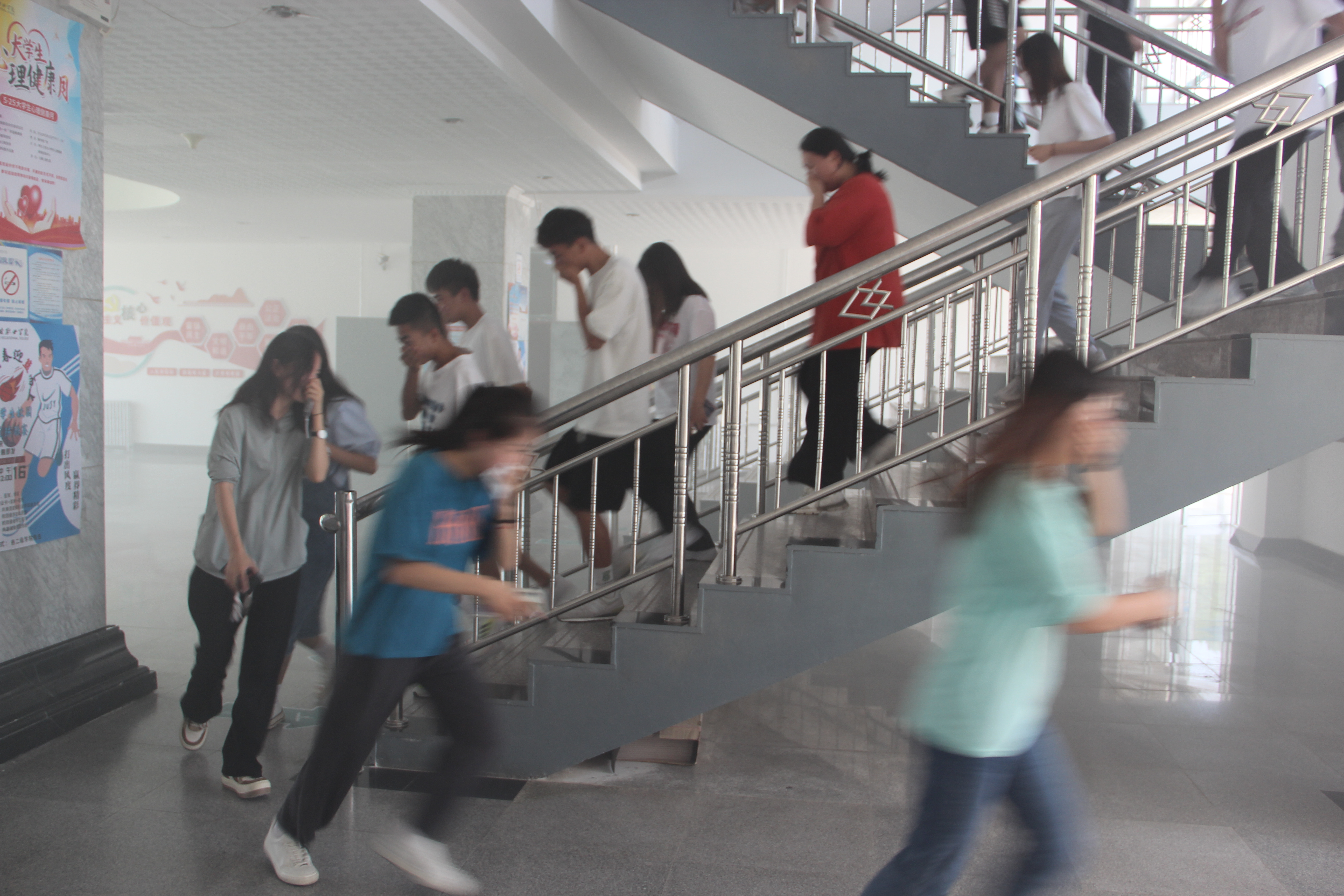 6月24日下午4點46分,學(xué)校應(yīng)急疏散演練正式開始。隨著消防警報響起,上課教師立即停止上課組織學(xué)生疏散,學(xué)生用毛巾捂住口鼻,在學(xué)工人員的指揮下,按照逃生路線迅速有序疏散。在5分鐘內(nèi),8000多名師生全部按指要求撤離到指定區(qū)域集合,演練取得圓滿成功。