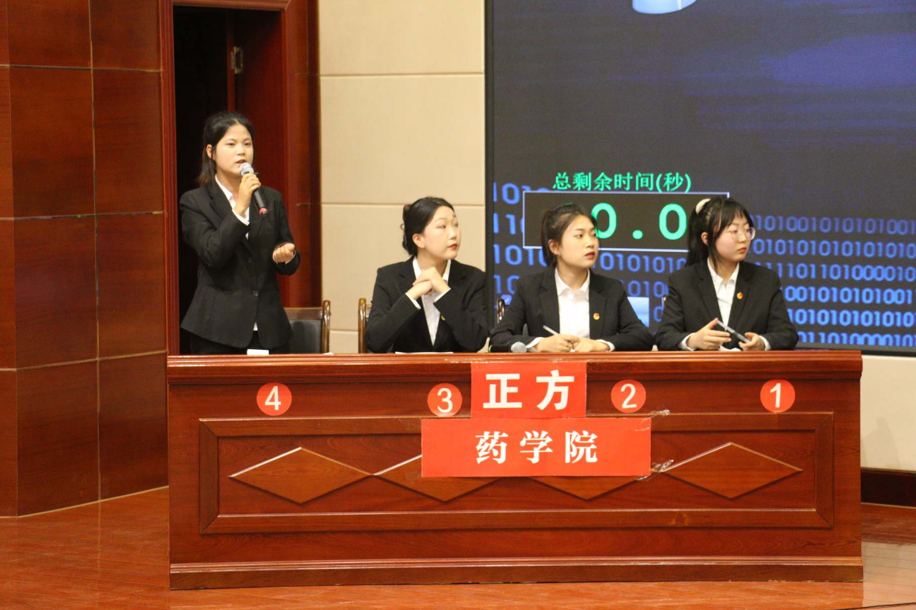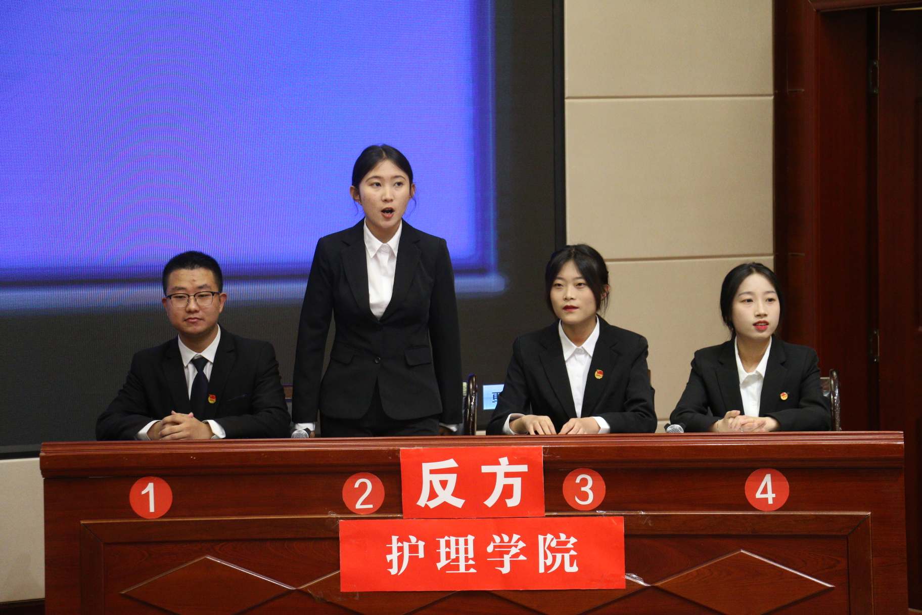 經(jīng)過(guò)11場(chǎng)次的比賽,藥學(xué)院代表隊(duì)和護(hù)理學(xué)院代表隊(duì)進(jìn)入最后決賽。決賽現(xiàn)場(chǎng),正反雙方針對(duì)誠(chéng)信主要靠“他律”還是主要靠“自律”拉開(kāi)激烈交戰(zhàn)。雙方辯手圍繞辯題你來(lái)我往、侃侃而談、針鋒相對(duì),卻不失風(fēng)度;立論階段,旁征博引,攻辯階段雙方辯手“激烈廝殺”;自由辯論環(huán)節(jié),辯論雙方的金句妙言、據(jù)理力爭(zhēng)、滔滔不絕將比賽氣氛推向高潮,贏得在場(chǎng)聽(tīng)眾的陣陣掌聲。