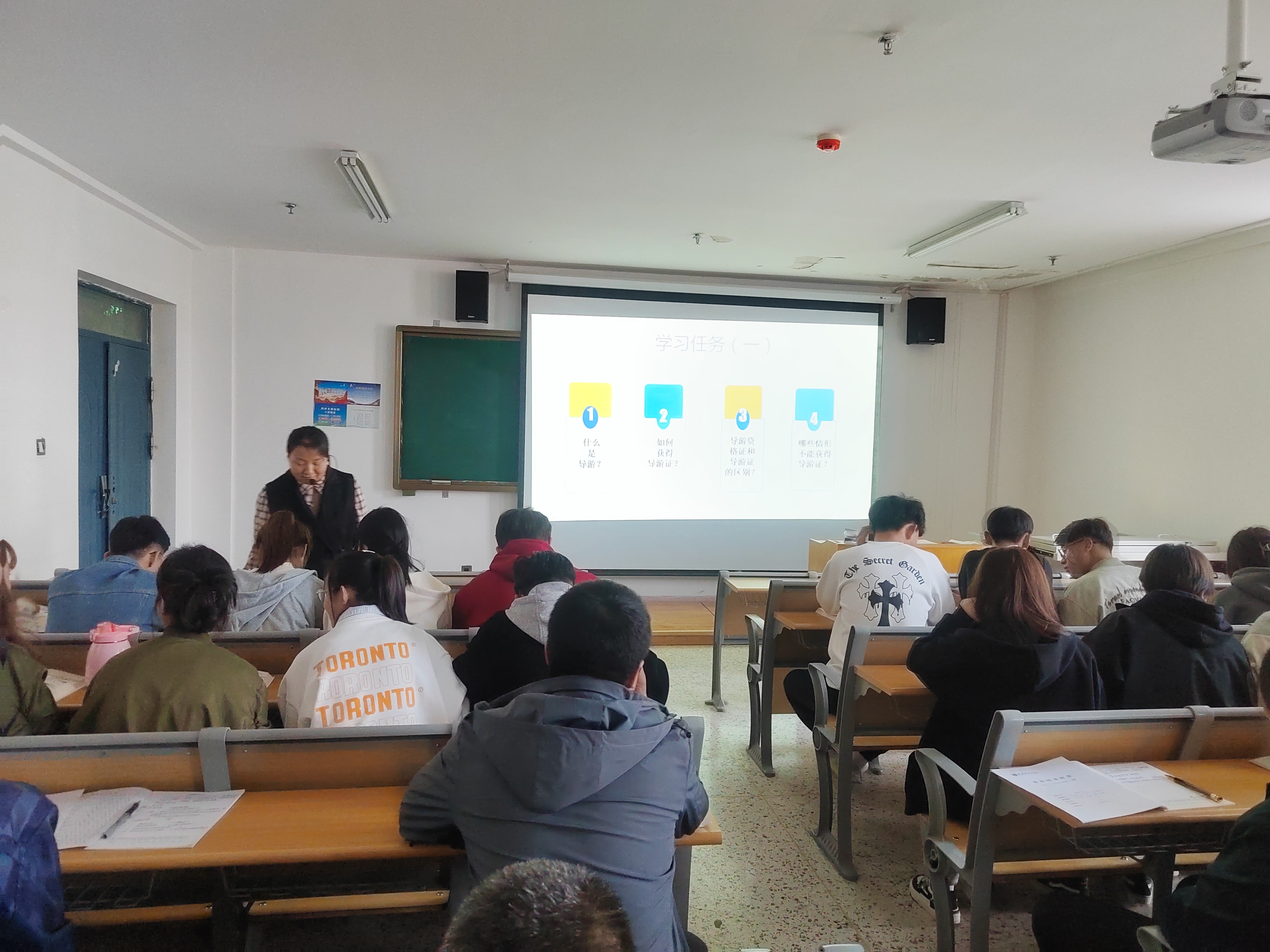 旅游教研室教師孔玉玲以《導游管理法律制度》為主題,帶領(lǐng)2022級旅游管理大專班學生為大家奉上了一堂精彩的研討課。整個過程在課程思政理念的指導下,以“某旅行社委派無證導游帶團造成嚴重后果”引入課題,激發(fā)學生興趣,緊接著圍繞課程導入案例,采用講授法、討論法、任務(wù)驅(qū)動法等多元化的教學方式,將課程教學內(nèi)容與思政元素無縫銜接,實現(xiàn)了顯性培育與隱性熏陶的完美融合,取得了良好的教學效果。