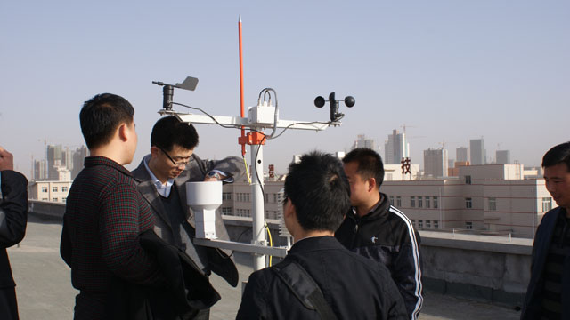 本次培訓(xùn)旨在提高教師對(duì)新進(jìn)實(shí)驗(yàn)設(shè)備的熟悉程度,解答實(shí)驗(yàn)過程存在的問題。設(shè)備廠家北京中鼎科技有限公司的技術(shù)人員為各位參加培訓(xùn)的老師進(jìn)行了講解和介紹。此次新進(jìn)的實(shí)驗(yàn)設(shè)施包括太陽能光伏發(fā)電應(yīng)用平臺(tái)、太陽能光熱集熱器、氣象監(jiān)控站、太陽輻射能測(cè)量平臺(tái)、集熱管性能檢測(cè)平臺(tái)等專業(yè)相關(guān)的實(shí)驗(yàn)設(shè)備。廠家的技術(shù)人員演示了太陽能光伏發(fā)電設(shè)備在太陽能蓄電池、太陽能離網(wǎng)并網(wǎng)發(fā)電方面的應(yīng)用,并展示了氣象監(jiān)控站實(shí)時(shí)監(jiān)控的氣象數(shù)據(jù)。老師們?cè)诩夹g(shù)人員的帶領(lǐng)下來到了氣象監(jiān)控設(shè)備及太陽能輻射能測(cè)量設(shè)備安放的平臺(tái),近距離的觀察了監(jiān)控設(shè)備的安裝和運(yùn)行,并詢問了監(jiān)控設(shè)備的使用和維護(hù)的注意事項(xiàng)。