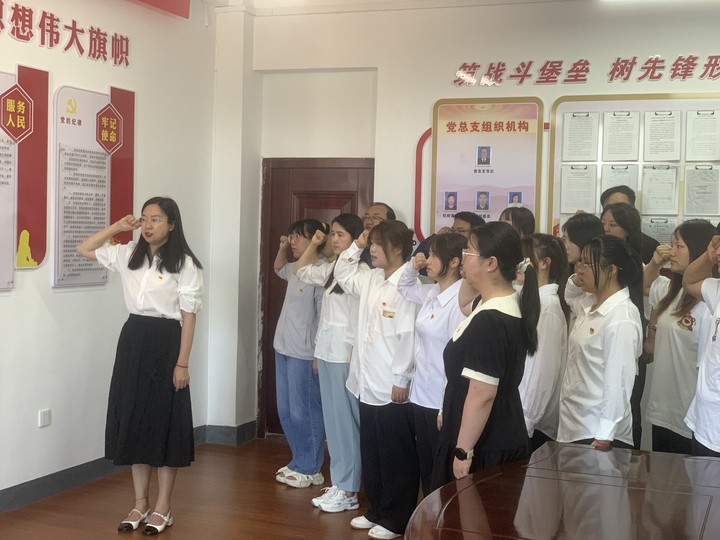 教師黨員趙文杰帶領(lǐng)全體預(yù)備黨員進行入黨宣誓,全體老黨員重溫入黨誓詞。黨員們集體面向黨旗,舉起右拳,跟隨領(lǐng)誓人宣誓,鄭重許下對黨的承諾,表達著自己為共產(chǎn)主義事業(yè)奮斗終身的決心。每位黨員都接受了一次深刻的思想洗禮,更加明確了新時代黨員的責(zé)任擔(dān)當(dāng)。