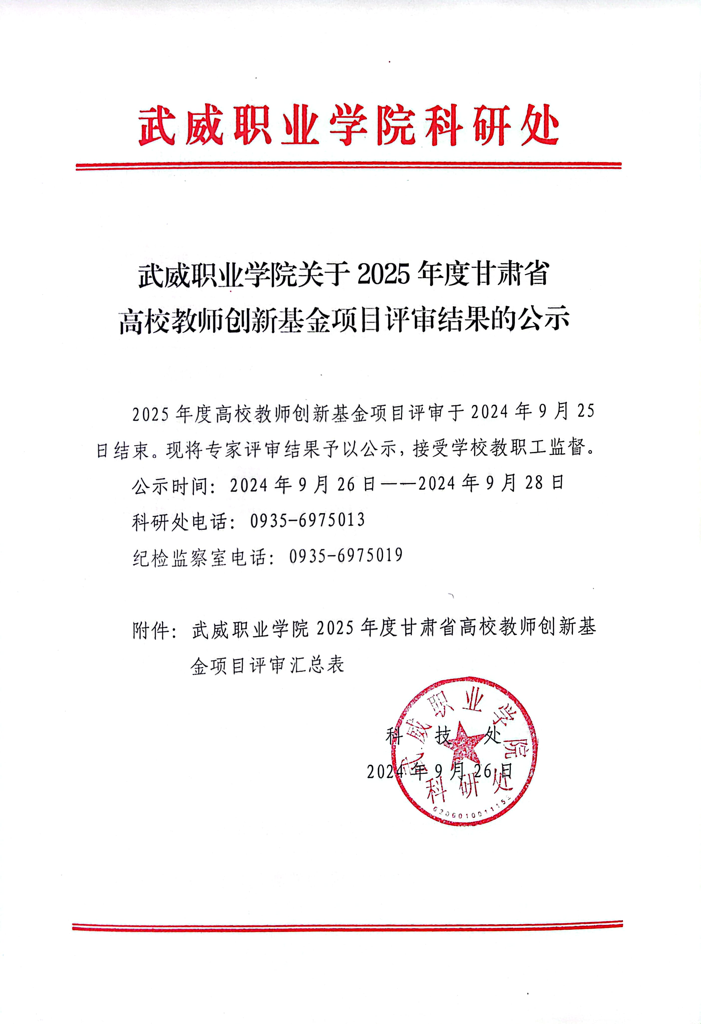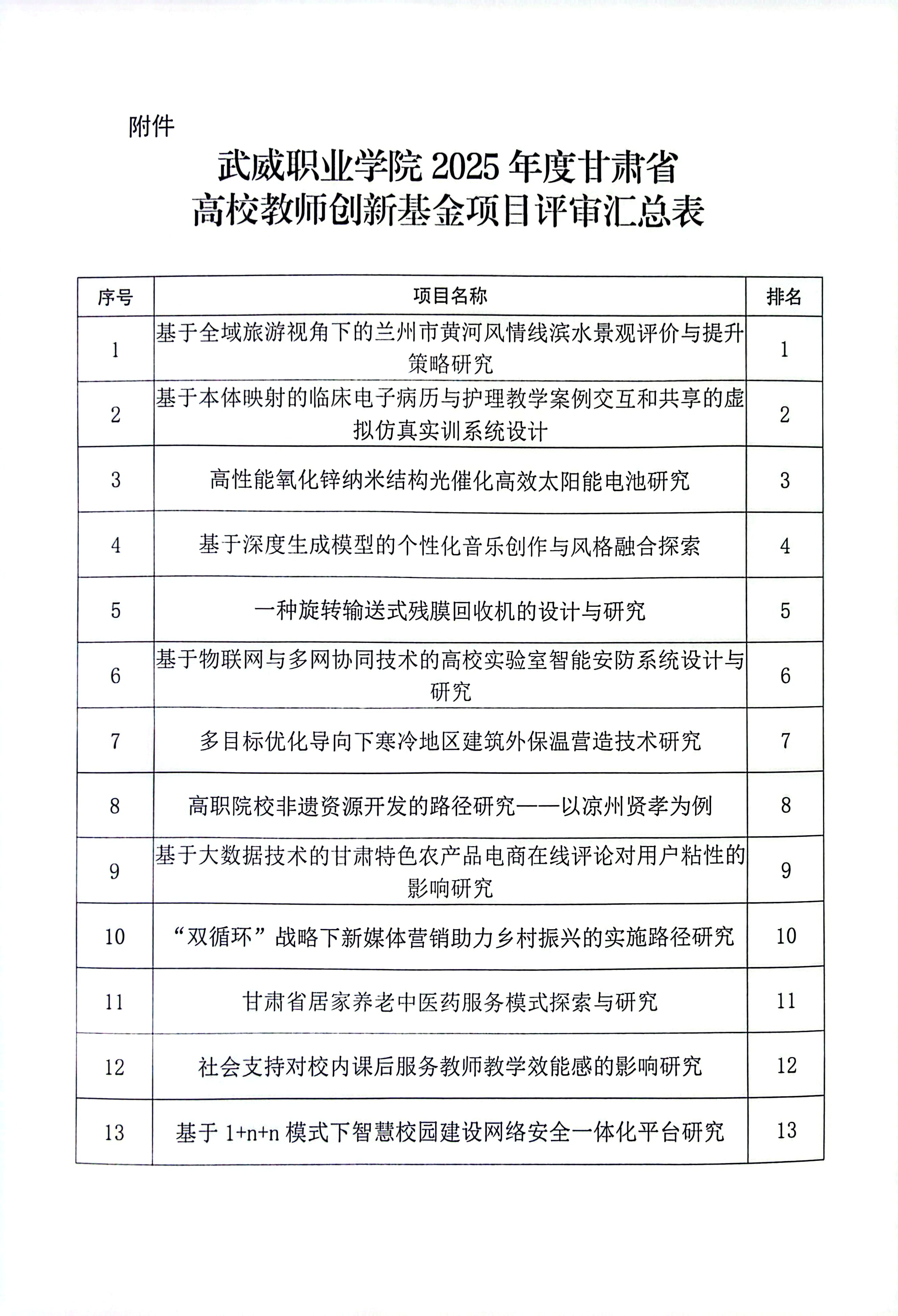武威職業(yè)學(xué)院關(guān)于2025年度甘肅省高校教師創(chuàng)新基金項(xiàng)目評(píng)審結(jié)果的公示