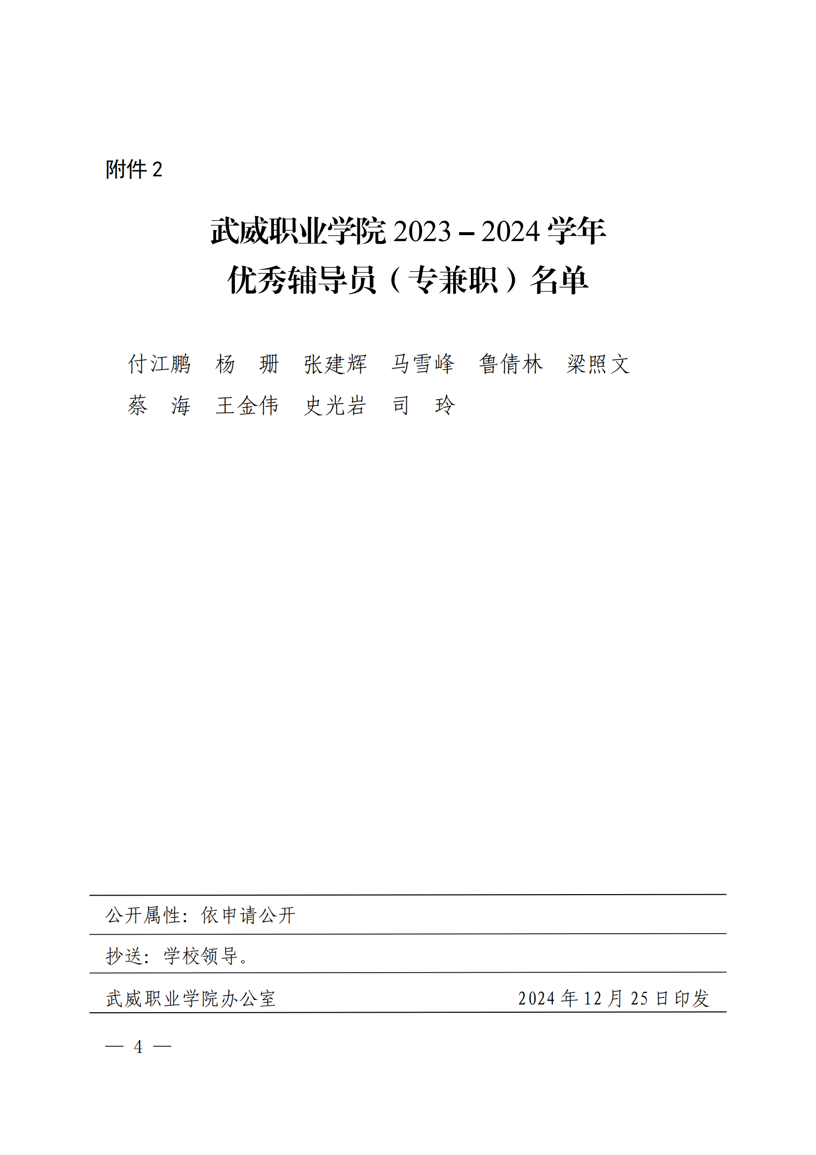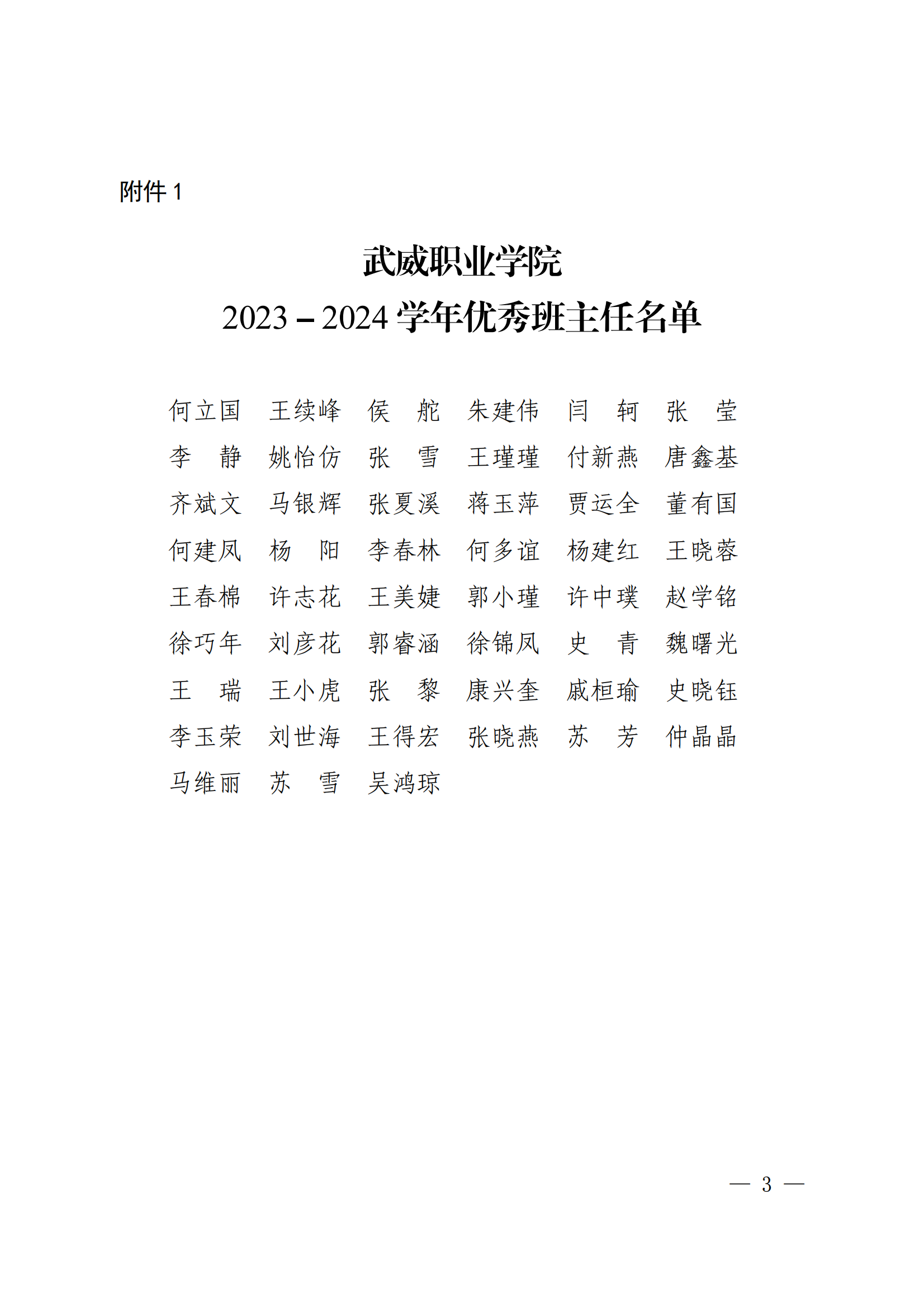 武威職業(yè)學(xué)院關(guān)于表揚(yáng)2023-2024學(xué)年優(yōu)秀班主任、優(yōu)秀輔導(dǎo)員(專兼職)的決定