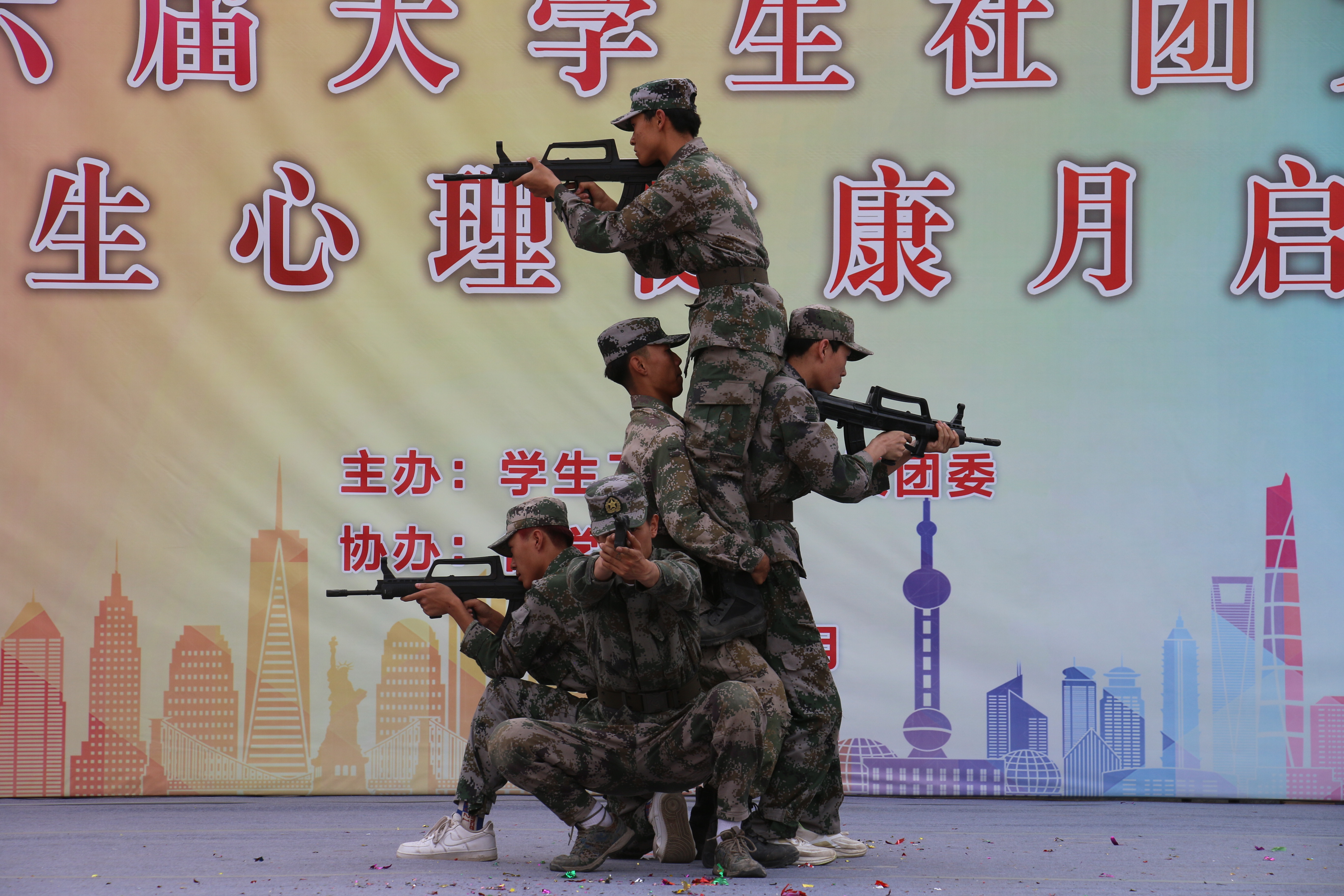 學(xué)校校長、黨委副書記張開禮對社團(tuán)文化節(jié)的開幕表示祝賀并致開幕詞。他指出,學(xué)校社團(tuán)是武職青年學(xué)子發(fā)揚(yáng)興趣特長,陶冶興趣情操,拓展能力,創(chuàng)新創(chuàng)造的核心平臺。希望各學(xué)生社團(tuán)進(jìn)一步加強(qiáng)建設(shè),并對今后學(xué)生社團(tuán)發(fā)展提出三點要求:一是堅定理想信念,做好社團(tuán)文化的建設(shè)者。學(xué)生社團(tuán)要堅持以正能量、新思想、新形式統(tǒng)領(lǐng)社團(tuán)文化建設(shè),建立文化自信。二是勇于擔(dān)當(dāng)使命,做好凝聚青年的組織者。社團(tuán)活動必須堅持以服務(wù)廣大同學(xué)為根本原則,開展方向正確、健康向上、形式多樣的社團(tuán)活動。三是堅持守正創(chuàng)新,做好創(chuàng)新實踐的探索者。社團(tuán)活動要以創(chuàng)新、實踐為著力點,搭建培養(yǎng)創(chuàng)新社團(tuán)平臺,培育一批叫得響、反響好的創(chuàng)新實踐項目。