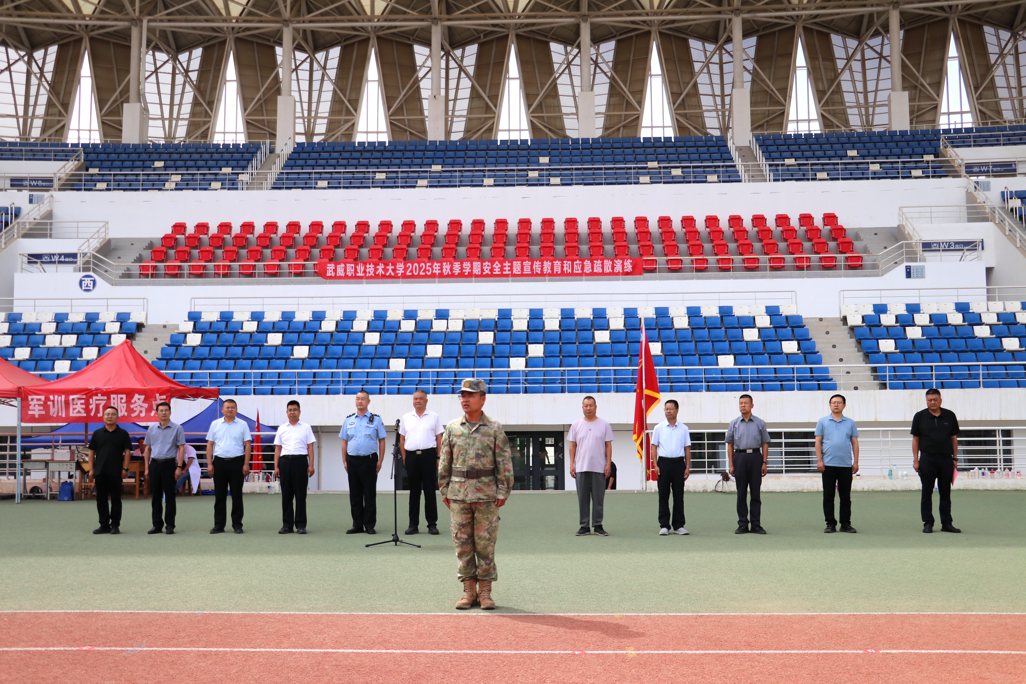 9月10日,學(xué)校舉行2025年秋季學(xué)期安全主題集中宣傳教育和應(yīng)急疏散暨滅火演練活動,學(xué)校新進(jìn)教師,食堂、鍋爐房、實(shí)驗(yàn)實(shí)訓(xùn)室等重點(diǎn)崗位管理人員,2025級全體學(xué)生共5000余人參加演練。學(xué)校黨委委員、副校長王守云,軍訓(xùn)教官,武威市公安局相關(guān)部門同志,各學(xué)院、各部門負(fù)責(zé)人現(xiàn)場觀摩演練。演練活動由安全保衛(wèi)處處長李欣主持。