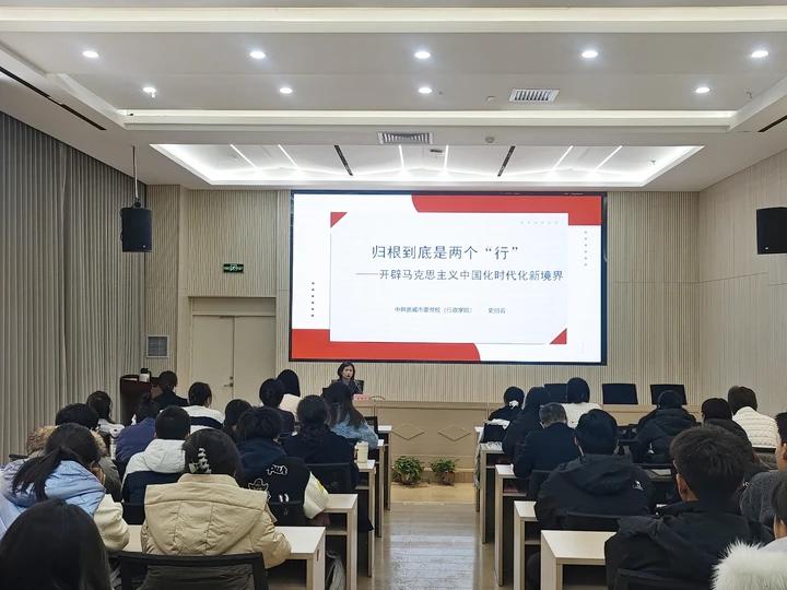 教學(xué)觀摩活動以“歸根到底是兩個行——開辟馬克思主義中國化時代化新境界”為題,從“真理之光:馬克思主義行”“實踐之行:中國化時代化的馬克思主義行”“復(fù)興之路:不斷開辟馬克思主義中國化時代化新境界”三部分展開講述,她從“兩個行”這一重大論斷的理論溯源、時代背景與核心要義切入,結(jié)合新時代以來的偉大實踐與歷史性變革,深刻揭示了中國共產(chǎn)黨為什么能、中國特色社會主義為什么好的理論邏輯與實踐密碼,生動回答中國之問、世界之問、人民之問、時代之問,實現(xiàn)了馬克思主義中國化時代化新的飛躍。她強調(diào),“兩個行”是相互貫通、有機統(tǒng)一的整體,開辟馬克思主義中國化時代化新境界,必須始終堅持“兩個行”的根本遵循,在實踐中不斷推進理論創(chuàng)新,并用發(fā)展著的理論指導(dǎo)新的實踐。